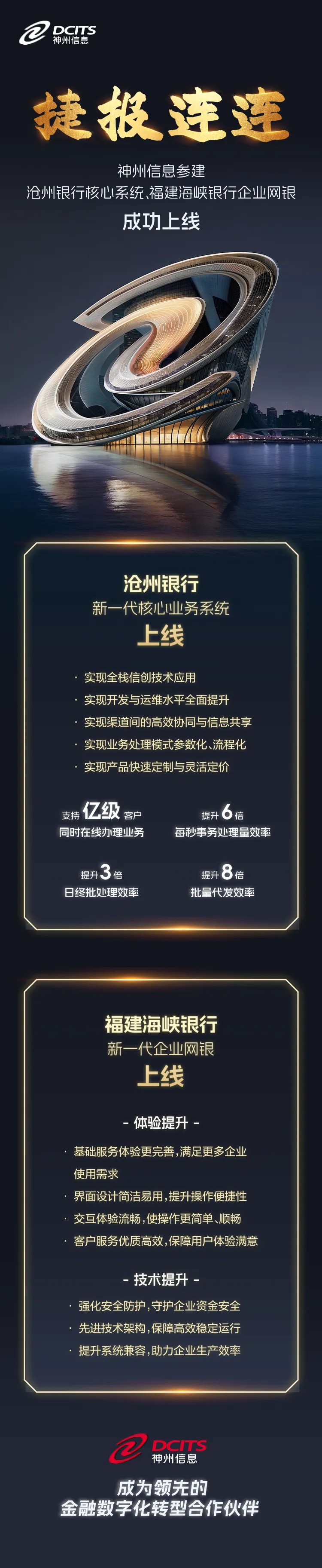 连续上线!神州信息参建沧州银行、福建海峡银行项目成功投产